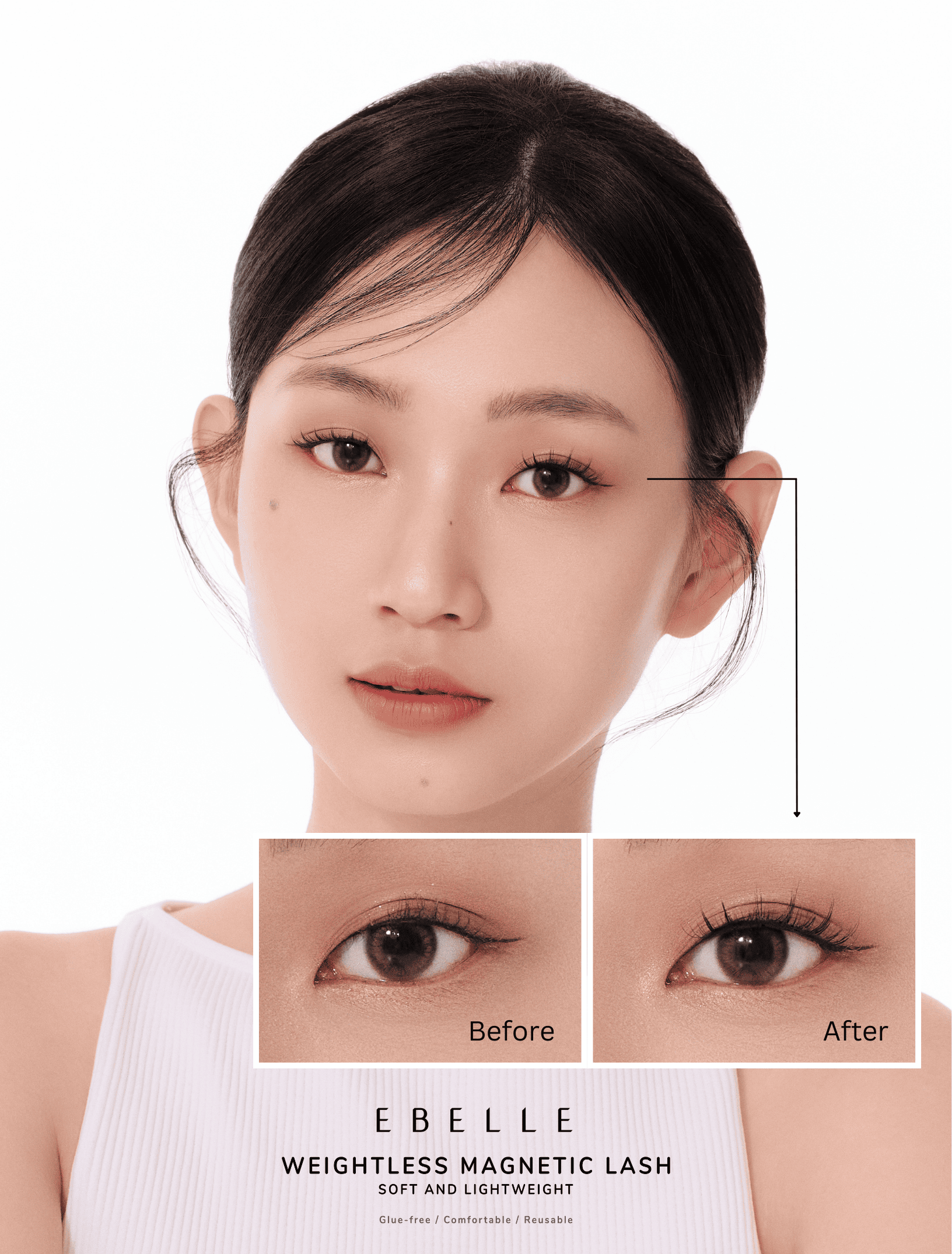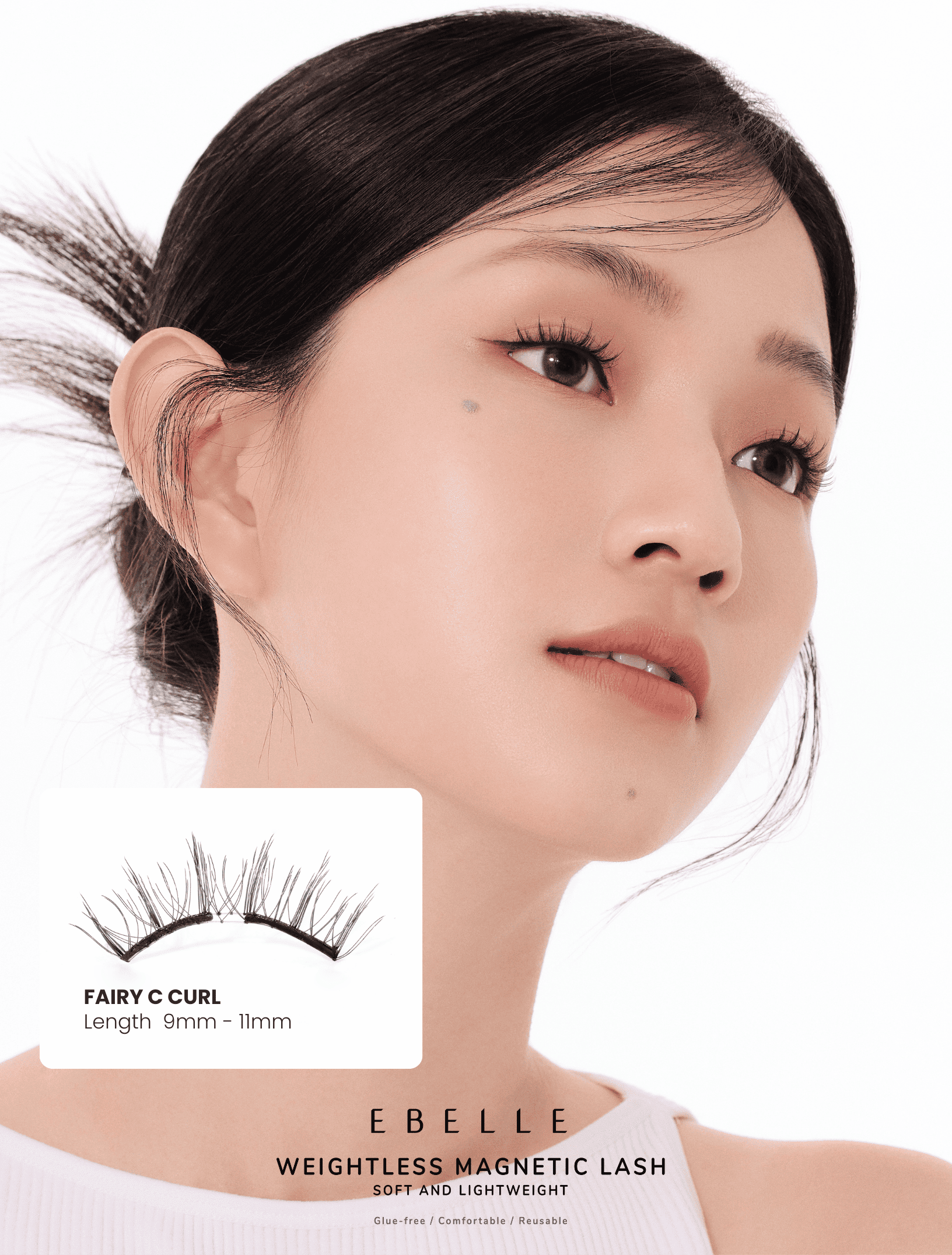 EBELLE轻磁睫毛采用的是轻+软的磁条科技,且磁条的分布也有所讲究,相比起市面上的硬磁和旧款且厚重的睫毛款式会更舒适更轻便,不压眼,即戴即取,快捷方便。